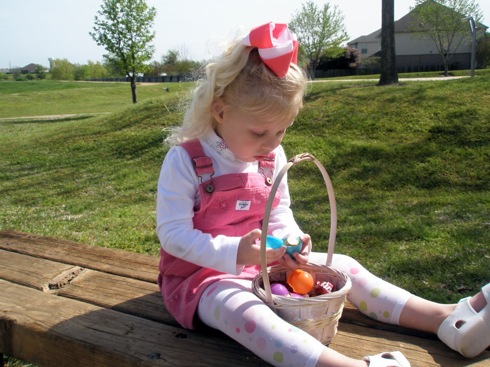 Hunting the eggs the Easter bunny hid on Easter morning.